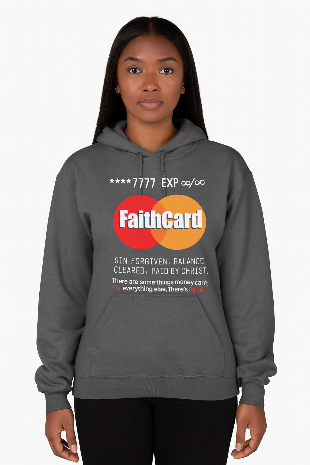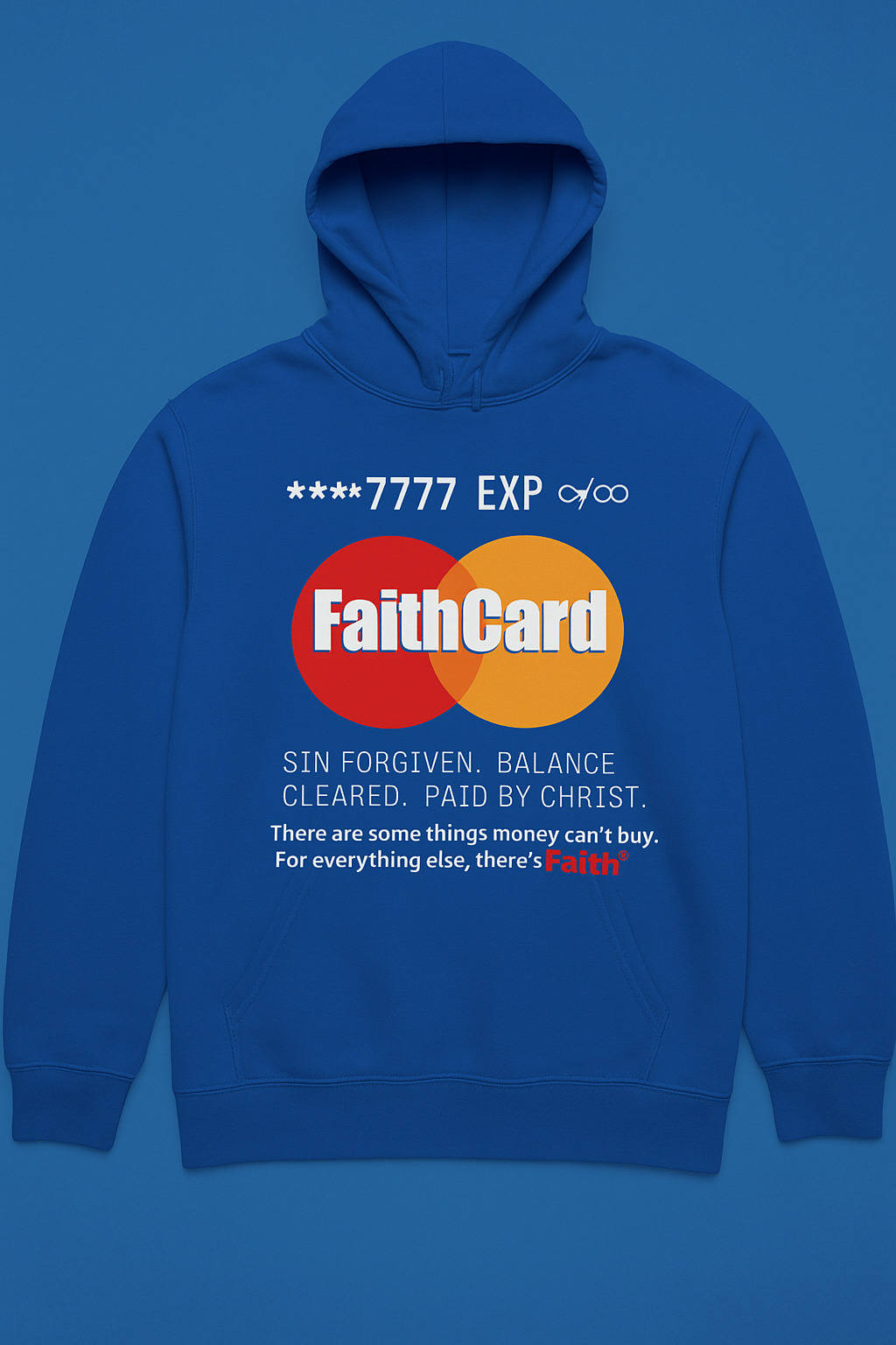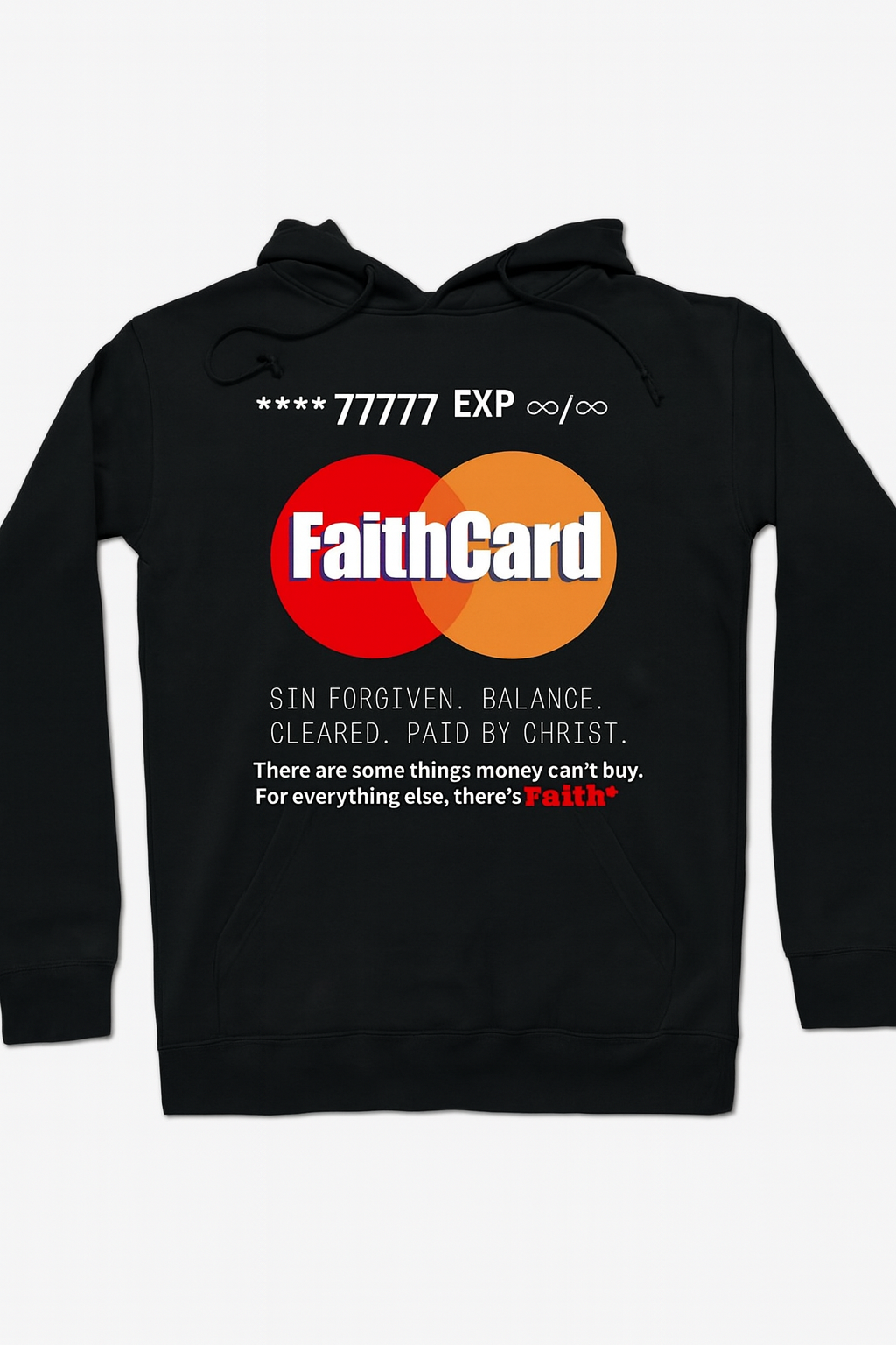 Wear your faith boldly with the FaithCard™ Hoodie — a powerful reminder that your sins are forgiven, your balance is cleared, and your debt has been paid by Christ. This hoodie symbolizes eternal redemption and limitless grace — because when the world says “declined,” faith says “approved.”